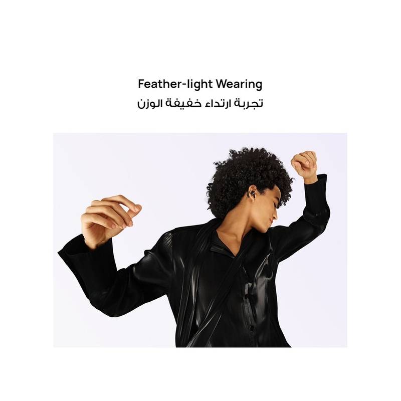 Stylish, smart, and safe—meet the HUAWEI FreeClip in Black. These open-ear True Wireless earbuds feature AI-powered noise cancellation, feather-light comfort, wear detection, and up to 36 hours of battery life, ideal for active users and multitaskers on iOS and Android.