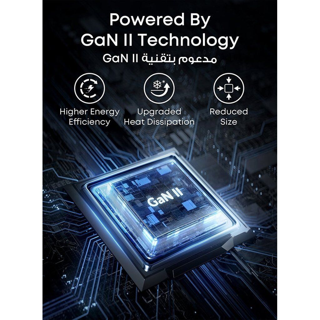 • Powered by GaN II Technology – Featuring increased efficiency, an innovative stacked design, and an upgraded circuit structure for maximum power in a smaller size.