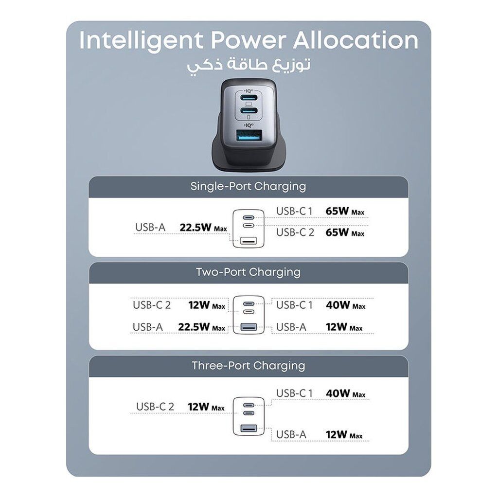 • 65W High-Speed Charging – Provides enough power to fully charge a 2020 MacBook Pro 13″ at full speed. When charging multiple devices, power is intelligently distributed across all 3 ports.