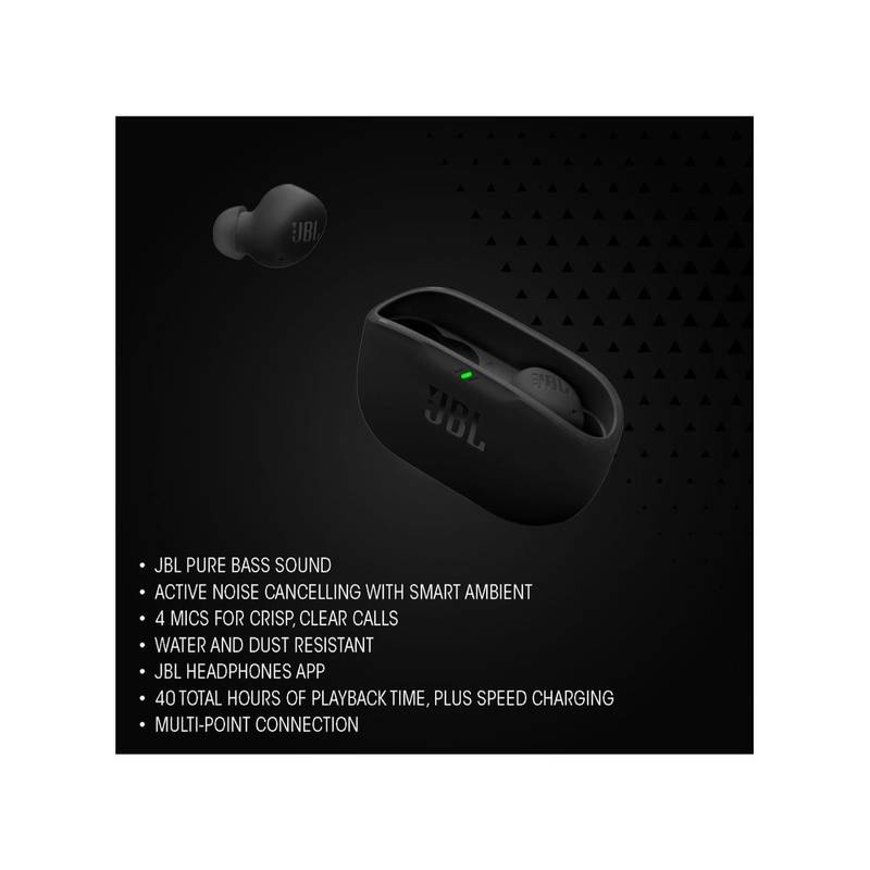 Immerse yourself in rich JBL Pure Bass Sound with the Wave Buds 2. Featuring Active Noise Cancelling, Smart Ambient mode, and 40 hours of total playtime, these sleek earbuds offer powerful sound, seamless multi-device connection, and all-day comfort—perfect for your on-the-go lifestyle.
